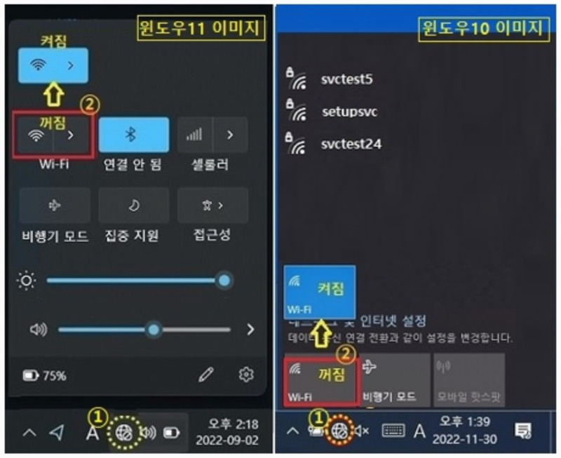설정 화면에 들어가는 것이 번거롭게 느껴진다면 더 간단한 방법도 있어요. 바탕화면 오른쪽 아래에 있는 와이파이 아이콘을 눌러보세요. 그러면 작은 창이 나타나면서 현재 연결 가능한 와이파이 목록과 함께 와이파이 기능을 켜고 끌 수 있는 부분이 나타납니다. 여기서 와이파이가 꺼져 있다면 다시 켜주기만 하면 돼요. 운영체제 버전에 따라 화면 모양은 조금씩 다르지만 기본적인 원리는 같아서 쉽게 찾으실 수 있을 거예요.