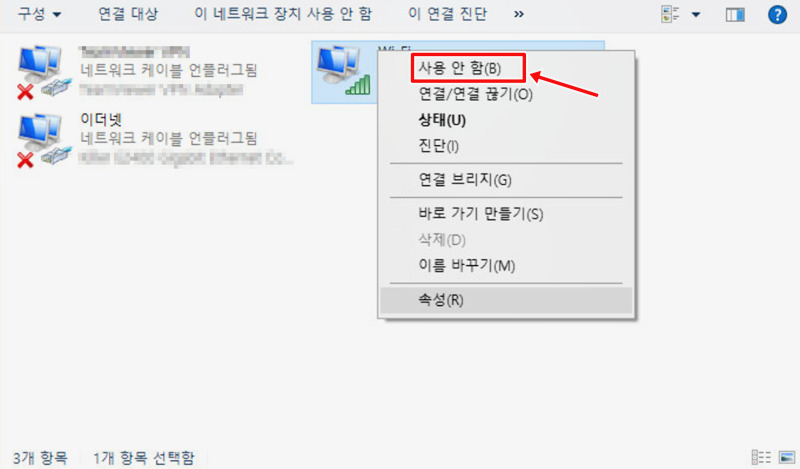 '어댑터 옵션 변경'으로 들어오면 여러 네트워크 연결 아이콘들이 보이는데, 그중에서 'Wi-Fi' 또는 '무선 네트워크 연결'이라고 표시된 아이콘을 찾아보세요. 이 아이콘 위에 마우스 커서를 올리고 오른쪽 버튼을 누르면 여러 메뉴가 나타나는데, 만약 '사용 안 함'으로 되어 있다면 인터넷이 비활성화된 상태라는 의미예요. 이때는 '사용'으로 바꿔주면 다시 인터넷을 활성화시킬 수 있습니다.