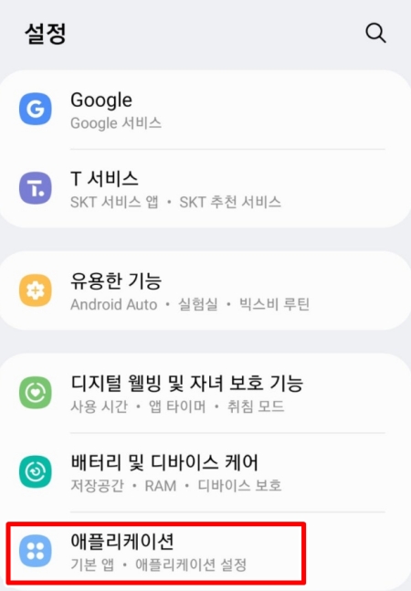 설정 메뉴에는 정말 다양한 항목들이 있었어요. 그중에서 저는 아래쪽으로 화면을 내려 '애플리케이션'이라고 적힌 부분을 찾아서 들어갔어요. 설치된 모든 프로그램들이 모여있는 곳이라서 카카오톡을 찾기 위해서는 이쪽으로 들어가는 게 맞다고 생각했어요.