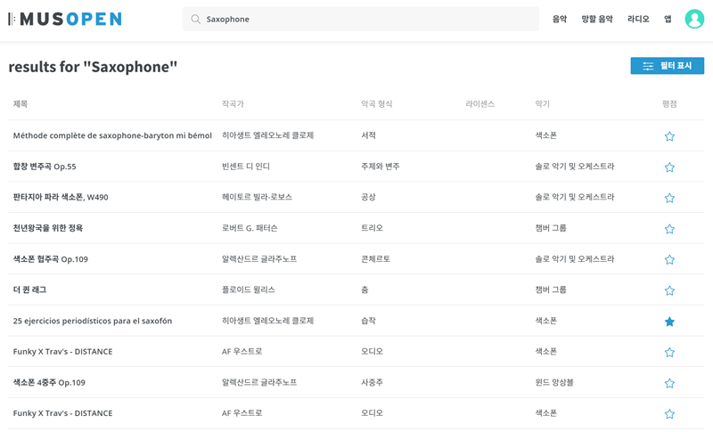찾고자 하는 자료가 너무 많아 눈이 어지러울 때는 화면 상단에 있는 하늘색 버튼을 눌러서 범위를 좁혀보는 게 좋아요. 작곡가나 곡의 형태 혹은 악기별로 세분화된 기준을 정할 수 있어서 내가 원하는 자료만 쏙쏙 골라낼 수 있거든요. 저도 예전에는 무작정 목록을 넘겨보느라 시간을 많이 썼지만 이제는 이 설정을 활용해서 필요한 내용만 빠르게 찾아내고 있답니다. 복잡한 자료들 사이에서 길을 잃지 않게 도와주는 나침반 같은 역할을 해주니 여러분도 꼭 활용해보시길 바랄게요.