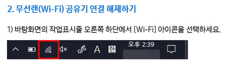 이제 볼일을 다 보고 신호를 끊고 싶을 때는 아까와는 조금 다르게 시계 바로 옆에 있는 부채꼴 모양의 아이콘을 확인해 보세요. 아까보다 훨씬 간편하게 현재 내가 어떤 신호를 쓰고 있는지 상태를 보여주는 작은 창이 하나 올라올 거예요. 여기서 내가 지금 쓰고 있는 신호의 이름과 강도를 바로 파악할 수 있어 참 편하더라고요.