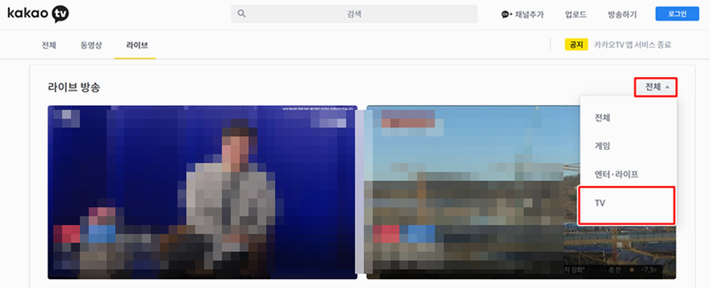 라이브 화면으로 들어오니 정말 다양한 방송들이 한눈에 들어와서 처음엔 조금 복잡하게 느껴질 수 있어요. 게임 방송부터 개인 방송까지 종류가 많거든요. 우리가 찾는 건 TV 채널이니까, 화면 오른쪽 위에 있는 '전체'라고 표시된 부분을 살펴보세요. 이 부분을 누르면 카테고리를 선택할 수 있는 목록이 나타나는데, 여기서 'TV' 항목을 선택해주시면 우리가 흔히 아는 방송사들의 채널만 깔끔하게 골라볼 수 있어서 정말 편리해요.