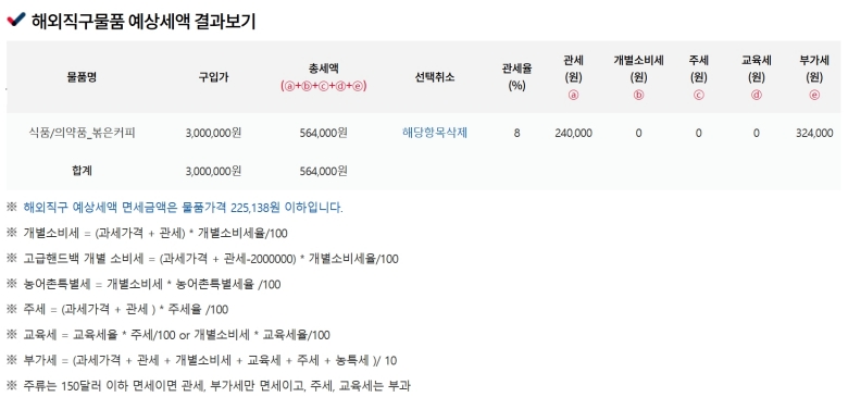 버튼을 누르면 바로 아래에 계산 결과가 표로 나타날 거예요. '총세액'이라고 표시된 금액이 바로 우리가 최종적으로 납부해야 할 예상 관부가세예요. 그 옆으로는 관세, 부가세 등 세금이 어떤 항목으로 구성되어 있는지도 자세히 보여주죠. 이제 이 결과를 통해 내가 사려는 물건의 진짜 최종 가격을 알 수 있게 된 거예요. 더 이상 어림짐작으로 불안해할 필요가 없겠죠.