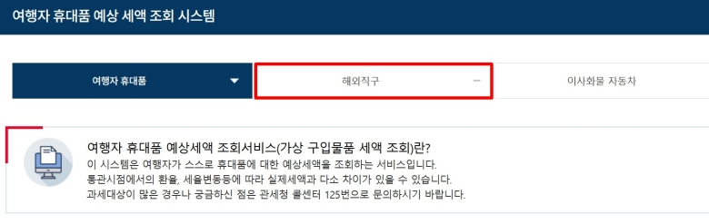 안으로 들어가면 '여행자 휴대품'과 '해외직구' 두 가지 선택지가 보여서 처음엔 조금 헷갈릴 수 있어요. 이 둘은 면세 한도나 세금 계산 방식이 전혀 다르기 때문에 정확히 골라야 해요. 우리는 해외 인터넷 쇼핑으로 물건을 사는 경우니까, 망설이지 말고 '해외직구'를 선택해 주세요. 여행 다녀오면서 사 온 물건이 아니니 '여행자 휴대품'을 잘못 누르지 않도록 주의해야 해요.