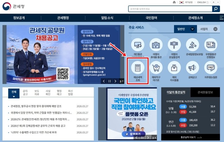정부 사이트는 왠지 복잡하고 어려울 것 같다는 생각에 처음에는 어디로 들어가야 할지 막막할 수 있어요. 그럴 땐 우선 '관세청' 사이트를 검색해서 접속한 뒤, 홈페이지 중앙에 있는 '주요 서비스' 부분을 살펴보세요. 여러 아이콘 중에서 계산기 모양의 '예상세액 조회'를 찾아서 누르면 바로 다음 화면으로 넘어갈 수 있어요. 다른 메뉴에서 헤맬 필요 없이 바로 여기로 들어가면 돼요.