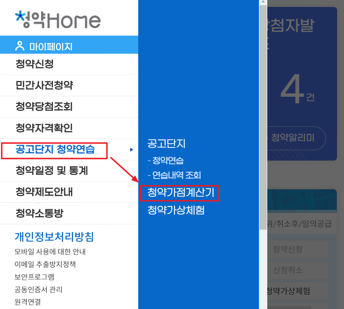 1. 한국부동산원 청약홈은 청약신청을 위한 다양한 서비스와 정보를 제공합니다. 사용자는 청약신청을 쉽게 할 수 있으며 당첨자 발표 및 결과 확인도 간편하게 가능합니다. 또한 청약정보에는 각종 아파트 단지에 대한 상세한 정보와 청약 일정, 자격 요건 등이 포함되어 있어 예비 청약자들이 보다 효율적으로 청약에 참여할 수 있게 도와주는 곳 입니다. 추가로 청약 관련 교육 자료와 가이드라인도 제공하여 초보자들이 이해하기 쉽게 알려주는데요. 여기서 주택 청약 예상 점수 계산은 공고단지 청약연습의 청약가점계산기로 이동해줍니다.