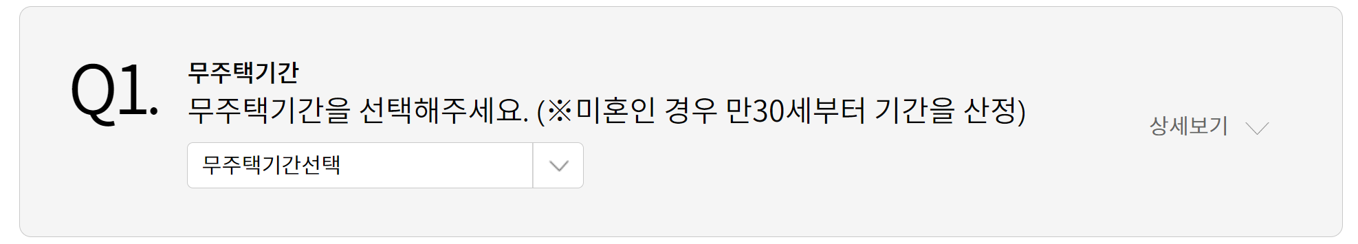3. 청약가점 계산기 이용 방법은 먼저 무주택 기간을 선택 합니다. 만약 미혼이라면 만 30세부터 기간이 산정 됩니다.