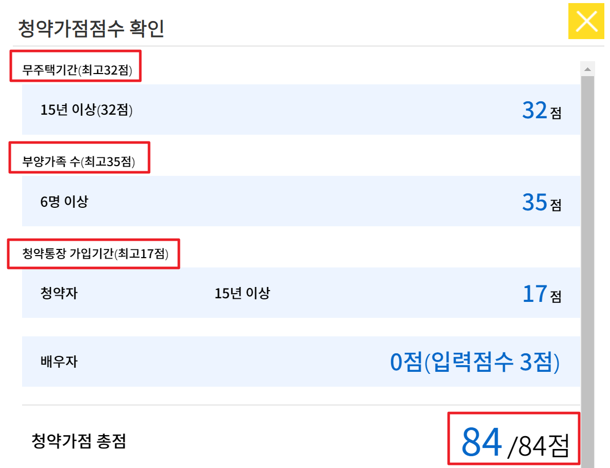 주택 청약점수 계산 만점 가족점수