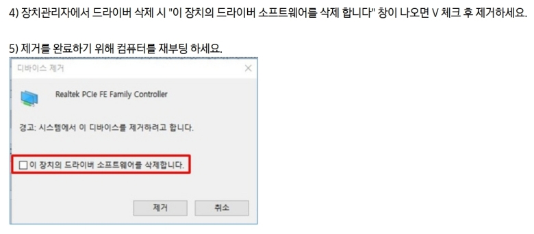이때 그냥 '제거'를 선택하기 전에, '이 장치의 드라이버 소프트웨어를 삭제합니다.' 앞의 네모 상자를 꼭 체크해주세요. 이렇게 해야 관련된 설정 파일까지 모두 깨끗하게 지워져서 충돌을 막을 수 있어요. 체크한 뒤 제거를 선택하고, 컴퓨터를 재부팅하면 모든 과정이 마무리됩니다.