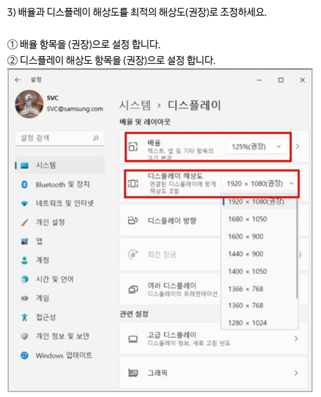웹서핑을 하거나 문서를 작성할 때 글씨가 흐릿하게 보이거나, 아이콘들이 뭉개져 보이면 작업 효율도 떨어지고 눈도 금방 피곤해지잖아요. 이럴 때 화면의 해상도나 배율을 조정해서 모든 것을 선명하고 또렷하게 볼 수 있도록 하는 기능이에요. 모니터가 가진 최적의 성능을 이끌어내서 가장 깔끔한 화면을 볼 수 있게 맞춰주는 과정이라고 생각하시면 쉬워요.