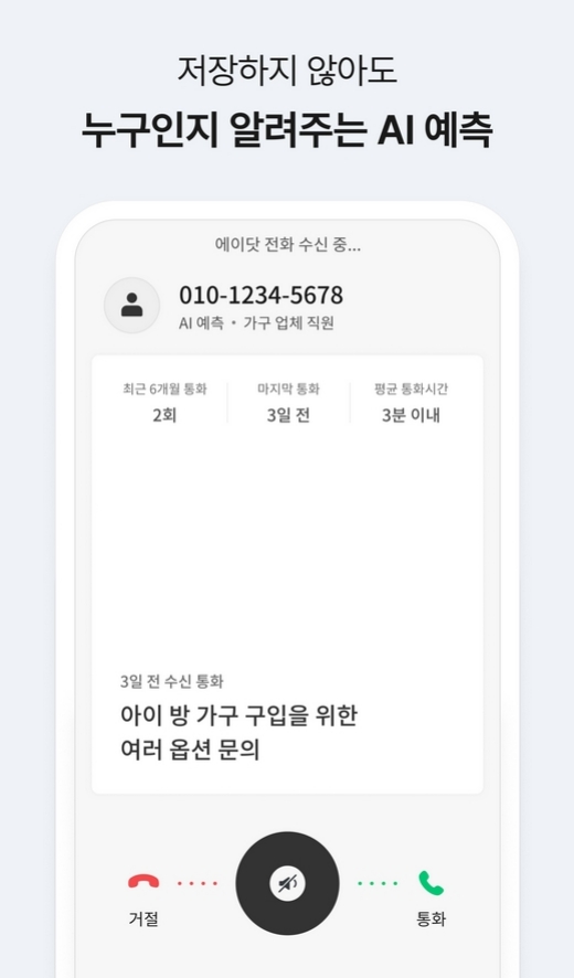 저장하지 않은 번호로 전화가 오면 대체 누굴까 궁금하고 불안하잖아요. 'AI 예측' 기능은 이럴 때 정말 유용해요. 예를 들어 제가 최근에 가구점에 문의한 적이 있다면, 그곳에서 전화가 올 때 'AI 예측·가구 업체 직원'이라고 미리 알려줘요. 제 통화 패턴이나 문자 내용을 바탕으로 예측해주는 건데, 덕분에 당황하지 않고 필요한 전화를 바로 받을 수 있었어요.