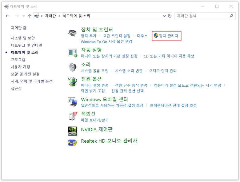제어판에 들어오셨다면 여러 메뉴 중에서 '하드웨어 및 소리' 항목 아래에 있는 '장치 관리자'로 들어가 주세요. 장치 관리자는 현재 컴퓨터에 연결된 모든 부품의 목록을 보여주고, 각 장치가 제대로 작동하고 있는지 상태를 확인할 수 있는 곳이에요. 만약 특정 장치에 문제가 생겼다면 이곳에 노란색 느낌표 같은 표시가 나타나기도 해서 문제 파악에 아주 유용해요.
