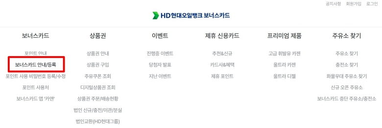 현대오일뱅크 보너스카드 등록 발급