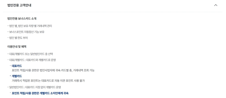 만약 개인용이 아닌 회사 차량에 쓸 카드가 필요하다면, 법인 전용 카드에 대한 안내도 살펴볼 수 있어요. 여러 차량의 포인트를 한곳에 모으는 '대표카드' 방식과, 운전자마다 각자 포인트를 쌓는 '개별카드' 방식 중 선택할 수 있더라고요. 업무용 차량을 운행하는 분들에게는 아주 유용한 정보가 될 것 같아요.