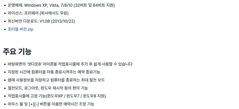 화면을 가장 아래쪽으로 쭉 내려보세요. 그럼 여러 메뉴들이 작은 글씨로 나열되어 있을 거예요. 처음에는 잘 안 보여서 저도 한참 찾았는데요. 자세히 보시면 다른 프로그램 이름들 사이에 'Shutdown8'이라고 적힌 부분이 보일 거예요. 이 메뉴를 선택해서 들어가시면 돼요.