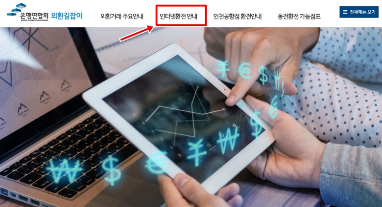 가장 저렴한 환전 수수료를 찾기 위해 여러 은행을 일일이 방문할 수는 없으니, 저는 주로 '은행연합회 외환길잡이' 사이트를 활용해요. 은행연합회 외환길잡이 사이트에 들어가시면 상단 메뉴가 여러 개 보일 거예요. 여기서 '인터넷환전안내'라는 메뉴로 들어가시면 됩니다. 온라인으로 환전할 때 필요한 모든 정보가 여기에 다 모여 있어서, 저처럼 발품 파는 걸 귀찮아하는 사람에게는 정말 편리한 곳이에요.