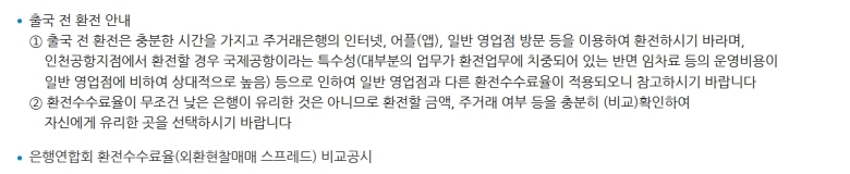 마지막으로 실용적인 조언을 좀 드리자면, 환전은 꼭 출국하기 며칠 전에 미리 해두는 게 좋아요. 출국 당일 인천공항 환전소에서 하면 정말 편하긴 하지만, 임대료 같은 운영비 때문에 시내 은행보다 수수료가 훨씬 비싸거든요. 그리고 무조건 수수료가 가장 낮은 은행이 정답은 아닐 수 있으니, 우대율까지 모두 적용된 최종 수령액을 꼼꼼히 따져보고 가장 유리한 곳을 선택하는 습관을 들이는 것이 좋습니다.