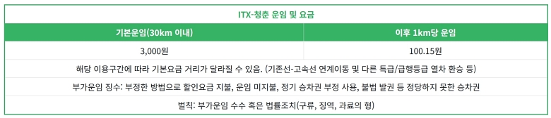 여행 계획에 빠질 수 없는 게 바로 요금 정보겠죠. ITX-청춘의 요금은 기본요금(30km 이내) 3,000원으로 시작해요. 그 이후부터는 1km당 약 100.15원이 추가되는 방식이에요. 예를 들어 용산에서 춘천까지 간다면, 총 운행거리가 98km니까 기본요금 구간을 훌쩍 넘어서겠죠? 이걸 미리 계산해보면 예산을 짜는 데 도움이 돼요. 부정승차 시에는 부가운임이 있으니 꼭 정당한 승차권을 이용해야 해요.