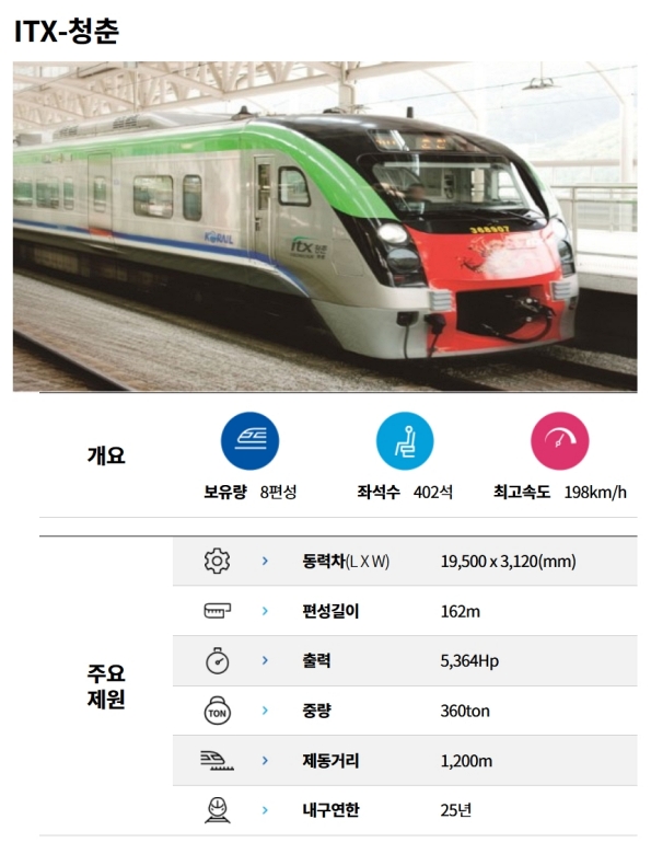 우리가 타게 될 열차 자체에 대한 정보도 흥미로워요. 총 8편성으로 이루어져 있고, 좌석 수는 402석이에요. 최고속도는 무려 198km/h에 달해서 서울에서 춘천까지 빠르게 이동할 수 있는 거고요. 무게는 360톤에 달하는 꽤 큰 열차랍니다. 최고속도가 빠르기 때문에 기존 경춘선 전철보다 훨씬 빠르게 목적지에 도착할 수 있다는 점이 가장 큰 매력이에요.
