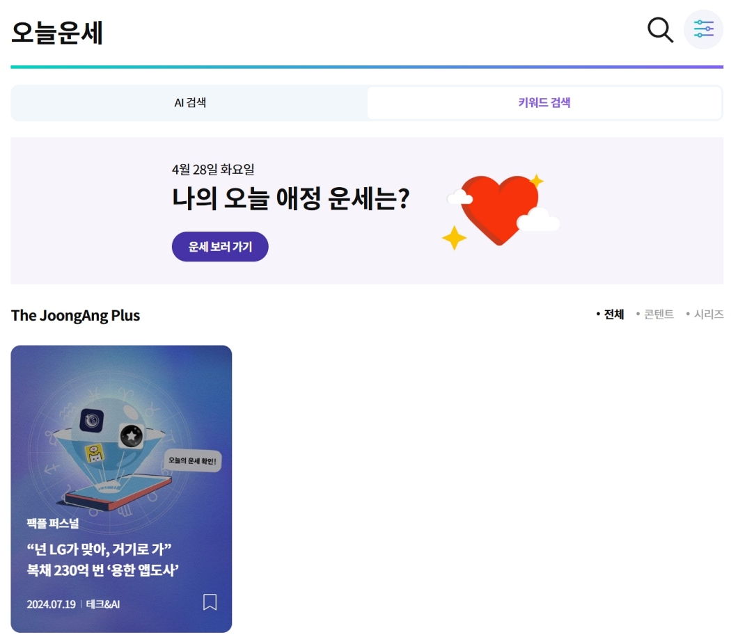 하루를 시작하며 오늘의 운세가 궁금하시다면, 먼저 중앙일보 사이트로 들어가신 다음 화면 오른쪽 위를 봐주세요. 거기에 있는 돋보기 모양의 검색 아이콘을 선택해 주시면 된답니다. 보통 메뉴들 가장 끝에 있어서 쉽게 찾으실 수 있을 거예요. 저도 처음엔 어디 있는지 헤맸는데, 한번 알고 나니 항상 그 자리더라고요.