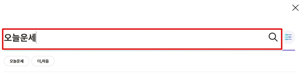 돋보기 아이콘을 선택하면 검색어를 입력할 수 있는 창이 활짝 열려요. 여기에 다른 말은 필요 없고 딱 두 글자, '오늘운세'라고 입력한 뒤 검색을 진행해 주세요. 너무 길게 쓰면 오히려 원하는 결과가 안 나올 때가 있더라고요. 이렇게 간단한 단어로 찾는 게 가장 정확하고 빠른 방법이에요.