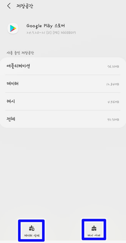 4. 저장공간에서 캐시 삭제와 데이터 삭제 두가지 모두 삭제합니다.