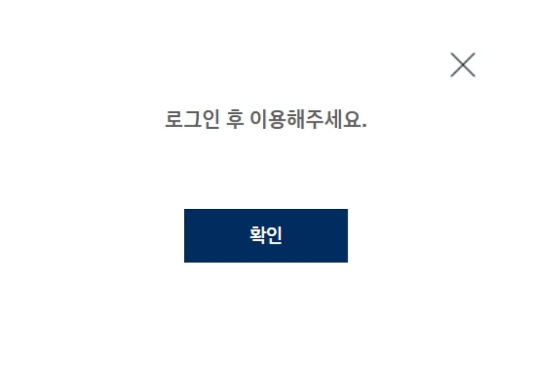 '사양조회'를 선택하면 바로 조회가 되는 게 아니라, 이런 안내창이 먼저 나올 거예요. '로그인 후 이용해주세요'라고 나오죠. 아무래도 개인 차량의 민감한 정보일 수 있다 보니, 회원 인증 절차를 거치는 것 같아요. 당황하지 마시고, 파란색 '확인' 버튼을 선택해서 다음으로 넘어가 주세요.