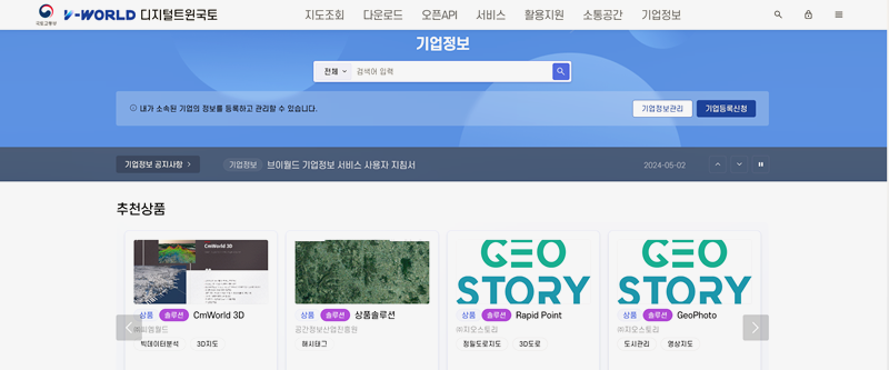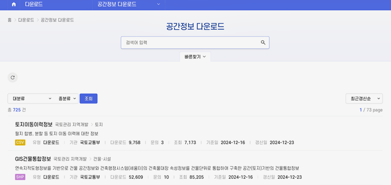 1. 예전의 정보들을 그대로 유지하면서도 여전히 익숙하고 사용하기 편리한 디자인을 가지고 있는데요. 메인 화면에 들어가면 메뉴들이 깔끔하게 중앙에 배치되어 있어 직관적으로 원하는 정보를 찾을 수 있죠. ‘공간정보 다운로드’ 메뉴에서 다양한 공간정보를 손쉽게 검색하고 다운로드할 수 있습니다. 기존의 오픈마켓과 유사한 기능을 합니다. 메뉴로 들어가보면 기존보다 더 많아진 메뉴를 볼 수 있고 분리되었던 메뉴를 한눈에 볼 수 있어서 더 좋게 바뀌었습니다.