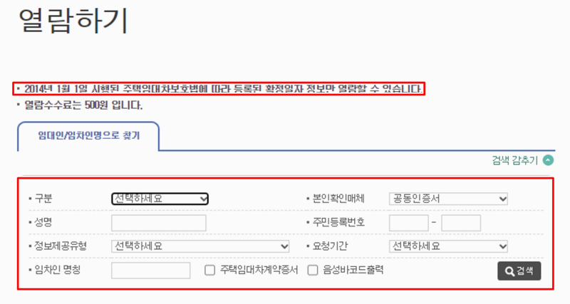 확정일자 부여현황을 확인하려면 몇 가지 정보를 입력해야 해요. 임대인이나 임차인 구분 후 성명, 주민번호, 정보제공유형, 요청기간, 임차인 명칭 등을 정확히 입력해야 하죠. 이 정보가 정확해야 제대로 검색할 수 있으니 잘 입력해 주세요. 필요한 인증 절차가 끝나면 '검색' 버튼을 눌러 주세요.