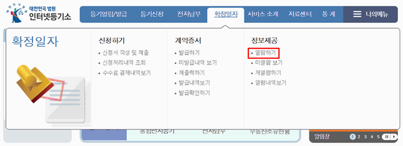 4. 열람 확정일자 선택