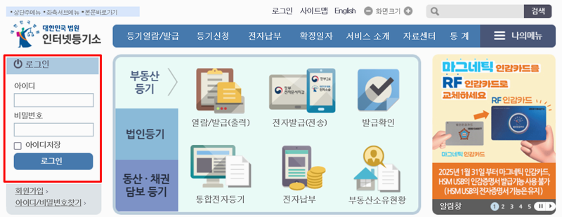 1. 인터넷등기소 접속 및 로그인