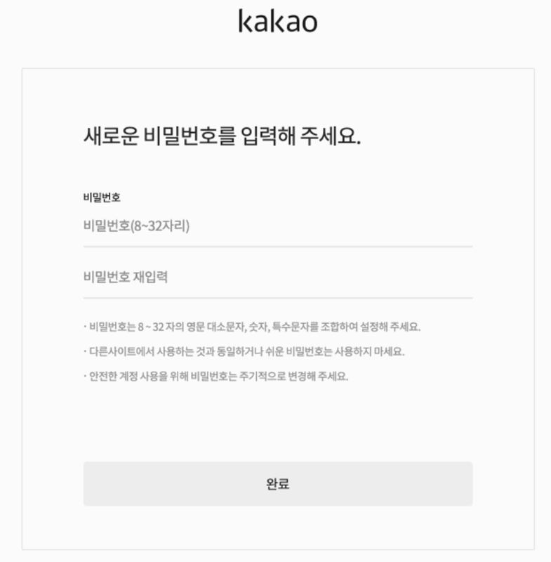 6. 이제 새로운 비밀번호를 설정합니다. 비밀번호는 8~32자 영문으로 설정 할 수 있으며 주기적으로 변경하는 것이 좋습니다. 비밀번호를 재설정 했다면 예전 다음 메일로 로그인해서 메일을 확인 할 수 있습니다.