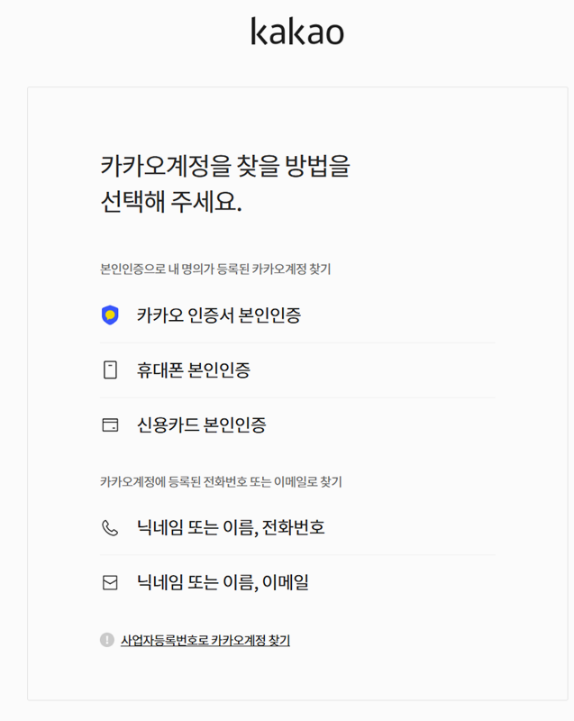 4. 카카오계정을 찾는 방법은 크게 세 가지입니다. 본인인증을 통해 내 명의로 등록된 계정을 확인할 수 있고 등록된 전화번호나 이메일 정보를 활용해 찾을 수도 있습니다. 또한 사업자등록번호를 이용해 계정을 확인하는 방법도 있습니다. 여러 가지 방법 중에서 편한 방식을 선택해 진행하면 됩니다.
