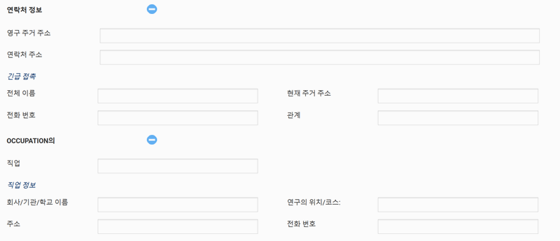 5. 연락처 정보와 긴급 연락처 그리고 직업 정보를 입력하는 단계예요. 현재 거주하는 주소와 연락처를 적고 긴급 상황 시 연락할 수 있는 사람의 이름 전화번호 거주 주소를 작성해야 해요. 보통 가족이나 친척을 등록하는 경우가 많아요. 직장인이라면 회사명과 근무지 주소를 입력하고 학생이라면 학교 정보를 적으면 돼요. 정확한 정보를 입력하는 것이 중요해요.