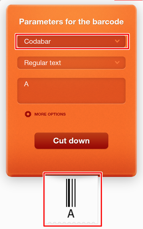 4. 그리고 다양한 바코드 형식을 선택할 수 있으며 Codabar는 도서관, 물류 분야에서 많이 사용하는 바코드 형식으로 숫자와 일부 특수 문자를 포함할 수 있습니다. Regular text 항목에 원하는 문자를 입력하면 바코드에 반영됩니다.
