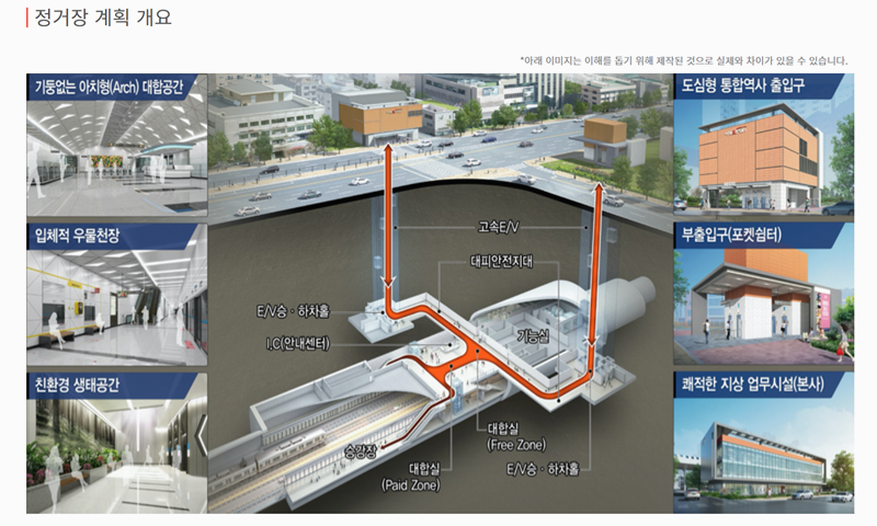 6. 정거장 계획 개요에서는 신안산선 정거장의 구조를 한눈에 볼 수 있습니다. 넓고 개방적인 대합실, 입체적인 승강장, 도심과 연결되는 출입구 등이 설계되어 이용자의 편의를 높였습니다. 또한 친환경적인 공간이 조성되어 쾌적한 이용 환경을 갖추고 있습니다.