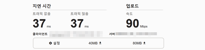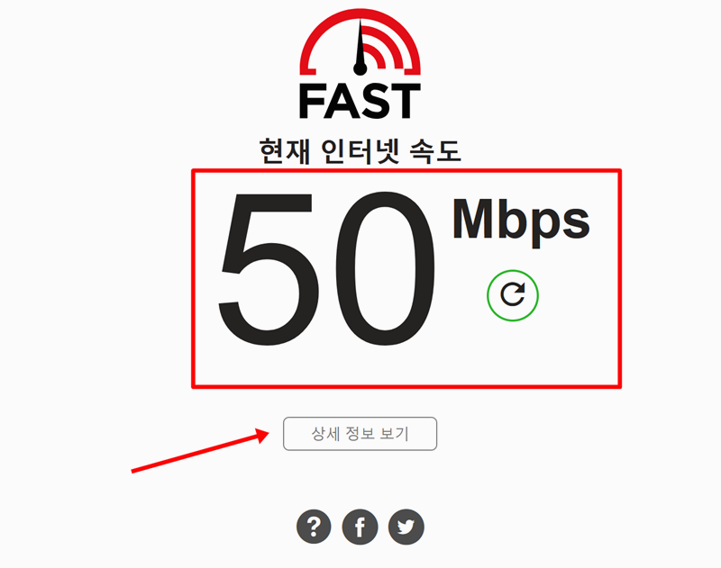 3. 상세정보 보기를 누르면 자세한 인터넷 속도 측정 결과를 보여주고 있습니다. 지연 시간, 업로드 속도가 측정되며 현재 네트워크 상태를 정확하게 확인 할 수 있습니다.