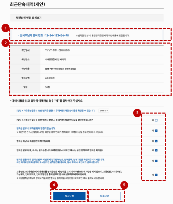 6. 과태료로 나온 경우 중엔 교통범칙금으로 바꿀 수 있는 것도 있어요. 가능한 경우엔 누리집 안에서 바로 신청할 수 있게 화면이 안내해줍니다.