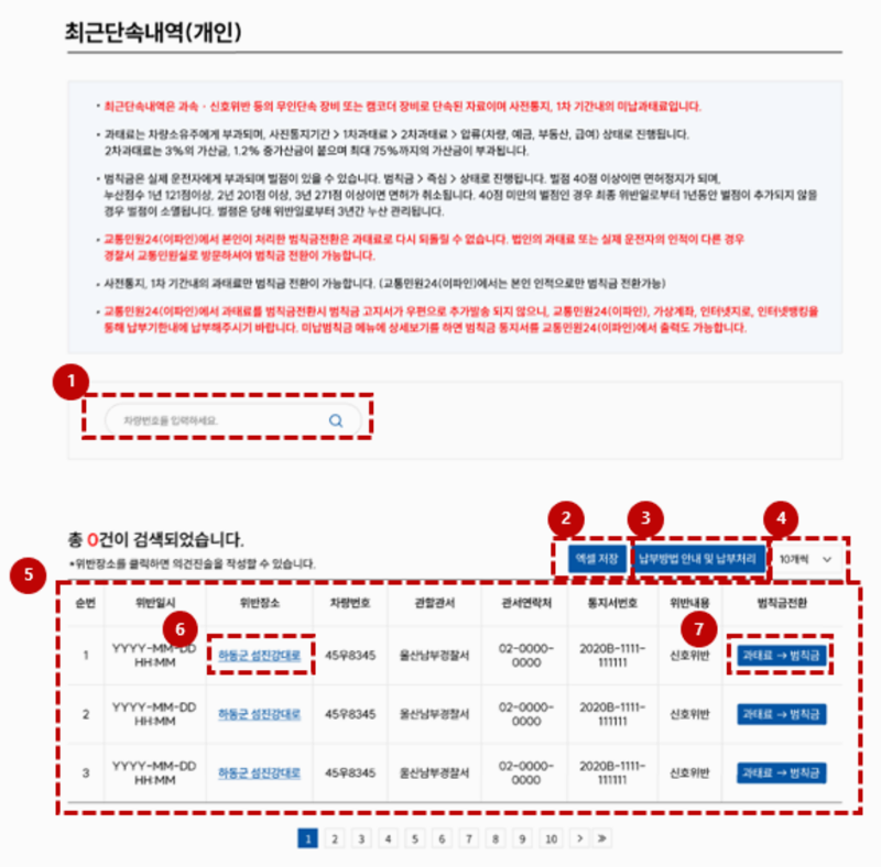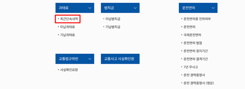 2. 마우스를 올렸을 때 열리는 작은 창에서 과태료 부분에 있는 최근단속내역을 눌러야 단속 기록을 확인할 수 있는 화면으로 넘어갈 수 있어요.
