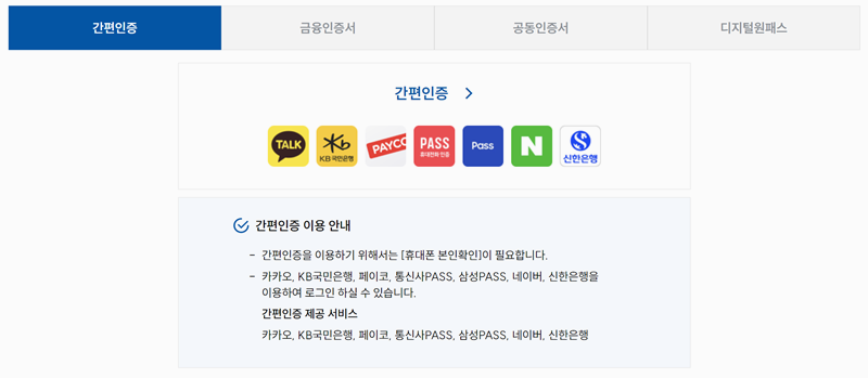 3. 단속 내역을 보기 위해선 먼저 로그인이 필요해요. 공동인증서나 간편인증 중에서 본인에게 익숙한 걸로 인증을 진행하시면 됩니다.