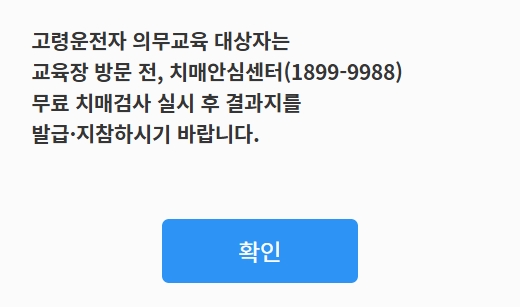 4. 교육을 받기 전에 치매안심센터에 들러 무료 검사를 받고 결과지를 발급받아 지참하셔야 합니다.