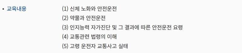 6. 교육 시간에는 신체 변화에 따른 운전 영향, 약물 관련 내용, 인지능력 자가 진단, 교통 법령 이해 등 다양한 내용을 배우게 됩니다.