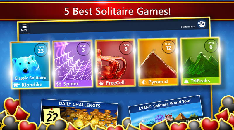 3. 솔리테어 안에는 여러 종류의 카드 게임이 들어 있어요. 대표적으로는 klondike, spider, free cell 같은 게임이 있는데 각기 다른 방식으로 진행돼서 한 가지 방식에 질릴 틈이 없어요.