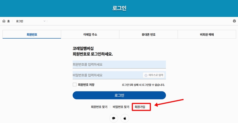 2. 로그인 화면으로 넘어가면 회원가입이라는 문구가 보입니다. 이 항목을 눌러서 새로 가입하는 페이지로 이동해주세요.