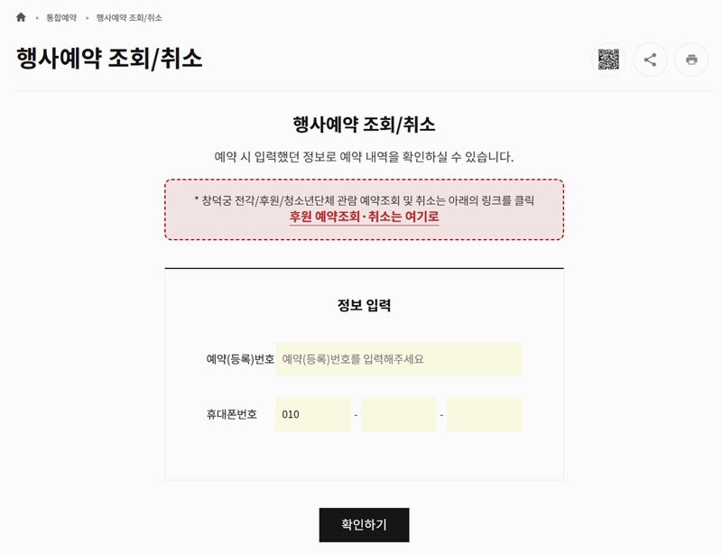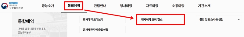 7. 예약 확인이나 취소가 필요할 땐 통합예약 메뉴 안 행사예약 조회·취소 쪽으로 가면 돼요. 예약해둔 날짜랑 관람 시간을 다시 볼 수 있어서 혹시라도 일정이 바뀌었을 때 바로 확인하고 처리할 수 있어 편리해요.