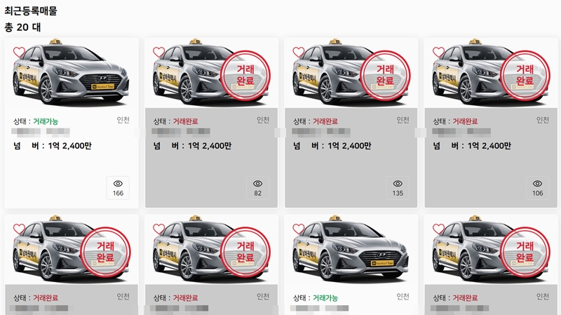 3. 최근 등록된 매물에서는 현재 거래 중인 택시 시세를 조회할 수 있습니다. 거래 가능한 매물뿐만 아니라 거래가 완료된 매물도 확인할 수 있어 시세를 파악하는 데 도움이 됩니다.