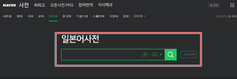 1. 네이버 일본어사전 사이트에 접속하면 가장 먼저 검색창이 보입니다. 여기서 알고 싶은 일본어 단어나 문장을 그대로 입력해주면 바로 검색 결과를 확인할 수 있어요.
