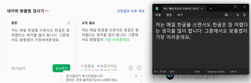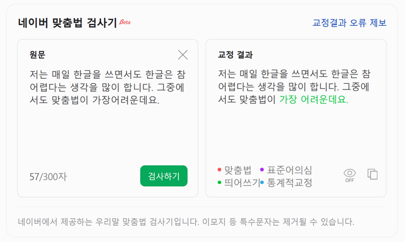 처음에는 가볍게 몇 문장 검사하는 용도로 사용하다 보면 점점 헷갈리는 부분도 자연스레 익혀져 글쓰기 실력도 함께 늘어납니다. 오늘 소개해드린 내용으로 글쓰기할 때 더는 고민하지 마시고, 편하게 문장 교정해보셨으면 합니다.