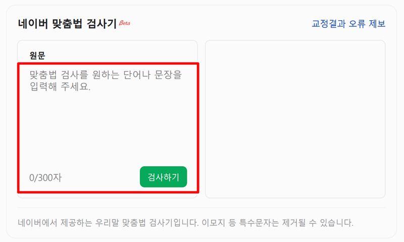 1. 검사기 화면에 들어가면 비어 있는 입력칸이 보여요. 그 자리에 맞춤법이나 띄어쓰기를 확인하고 싶은 문장을 그대로 넣어주면 돼요. 긴 글도 괜찮고 짧은 문장도 문제없으니 부담 갖지 말고 편하게 넣어보세요.