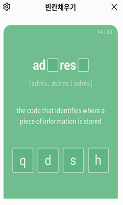 6. 학습용 기능도 다양하게 들어있어요. 카드 암기, 객관식 문제, 빈칸 채우기 같은 기능이 있어서 공부가 지루하지 않고 재미있게 할 수 있어요. 덕분에 자연스럽게 단어를 외울 수 있어요.